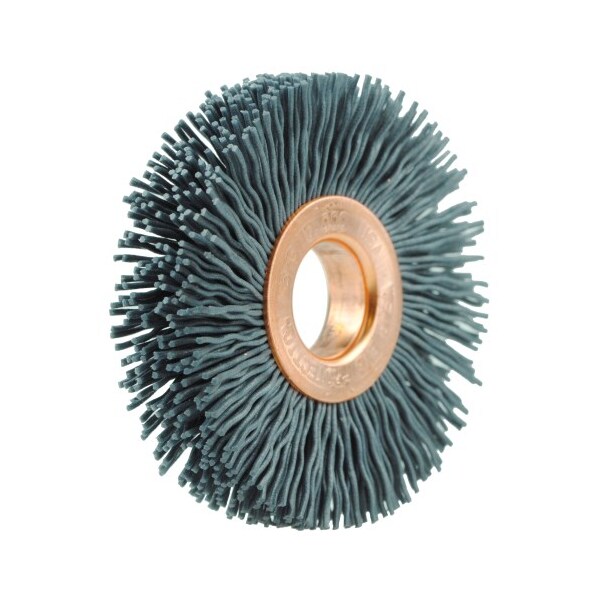 2" Dia Nylox Wheel Brush, .022/320SC Crimped Fill, 1/2"Arbor Hole
