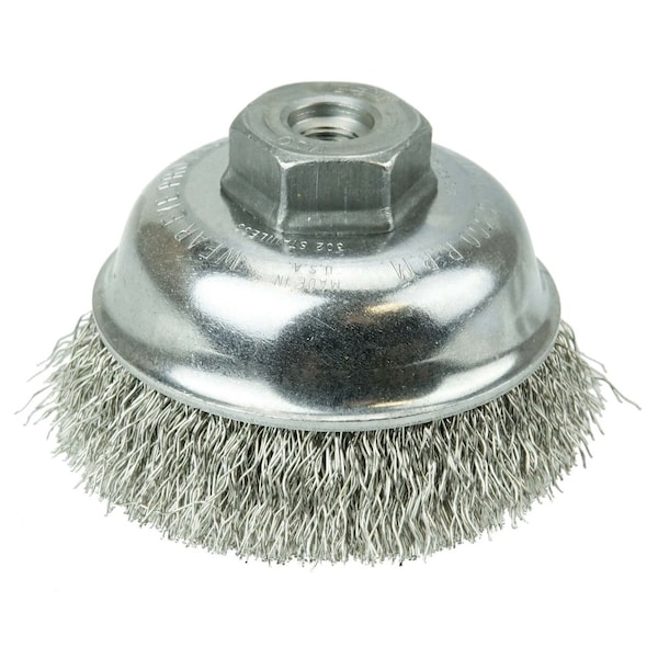3-1/2" Crimped Wire Cup Brush .014" Stainless Steel Fill M10x1.25 Nut