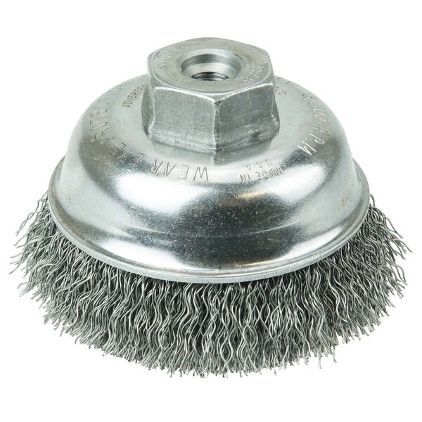3-1/2" Crimped Wire Cup Brush .014" Steel Fill 3/8"-24 UNF Nut