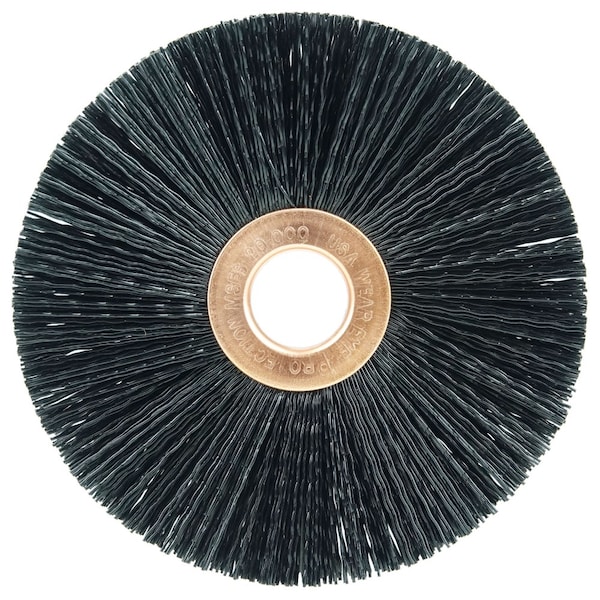 Weiler 3" Small Diameter Nylon Wheel Brush provides a flexible brushing action and consistent performance for demanding light duty cleaning and deburring applications. Featuring Weiler's solid ring construction, these radial brushes are available in heat-treated steel, type 302 stainless steel and brass wire for use in a wide variety of applications. 1/2" arbor hole for use on die grinder, right angle die grinder and drills. Provides a flexible brushing action and consistent performance for demanding light duty cleaning and deburring applications. For use on straight grinders and stationary machines such as bench or pedestal grinders and buffing lathes. Featuring Weiler's solid ring construction, these radial brushes are available in heat-treated steel, type 302 stainless steel and brass wire for use in a wide variety of applications. . .
