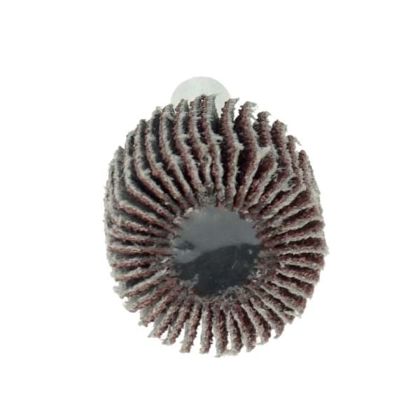 Weiler Wolverine aluminum oxide 3/4 inch coated abrasive flap wheels provide fast cutting at a value price on steel and other metals. The 1/4 inch stem allows for easy mounting on a die grinder or right angle die grinder. The flap wheel can be dressed to conform to an application part. A solid hub construction increases balance and reduced vibration in applications such as tube ID cleaning, thread cleaning and deburring. Provide Fast Cutting At a Value Price. Can be dressed to conform to application part. A solid hub construction increases balance and reduced vibration. . .