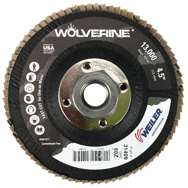 4-1/2" Abrasive Flap Disc, Flat (TY27), 60Z, 5/8"-11 UNC
