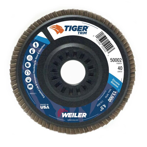 4-1/2" Tiger Flap Disc, Angled (TY29), Backing, 40Z, 7/8"