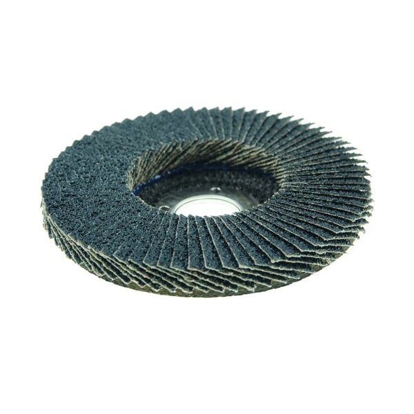The high density flap design is conformable to irregular surfaces while the 40 grit abrasive grain is best for edge beveling, chamfering, weld grinding, and blending with a right angle grinder.