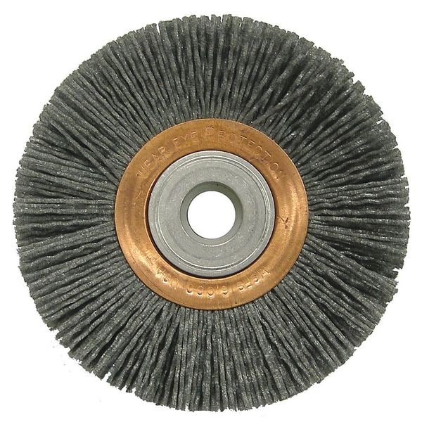 Wire Wheel Brush, Bristle Type Crimped Wire, Product Type Wire Wheel Brush, Bristle Material Nylon, Brush Dia. 4 in, Grit 80, Face Width 5/8 in, Bristle Diameter 0.04 in, Bristle Length 1 in, Compatible Tool Type Straight Grinder, Primary Material Application Carbon Steel, Connector Type Threaded Hole, Connector Size 5/8 in to 1/2 in, Operating Speed - Maximum 6,000 RPM
