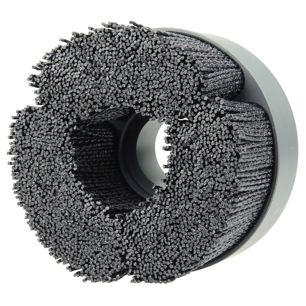 Manufactured using a tufted filament configuration. Longer trim length provides increased aggression, greater comformability and longer product life. 400 percent greater edge cutting action compared to traditional silicon carbide. Designed to mount directly to a standard shell mill holder. .