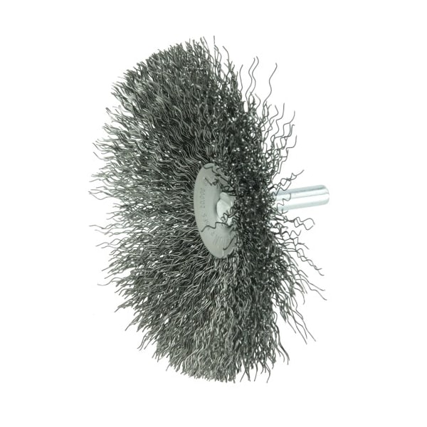 Stem, Bristle Type Crimped Wire, Brush Dia. 4 in, Grit Not Applicable, Face Width 9/16 in, Bristle Diameter 0.008 in, Compatible Tool Type Die Grinder, Drill Press, Operating Speed - Maximum 20,000 RPM, Color Not Applicable