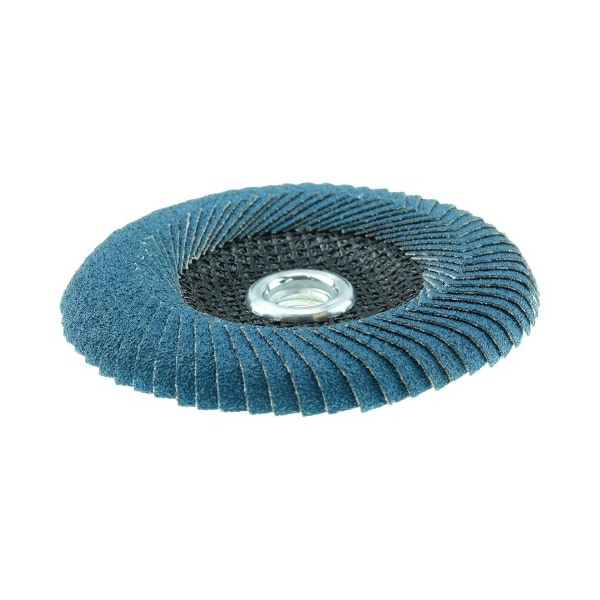 90 Degree Flap Design Ideal for Grinding Fillet Welds. Flaps wrap around the edge of the disc optimizing flap to metal contact. Provides exceptional feel and control while grinding. . .