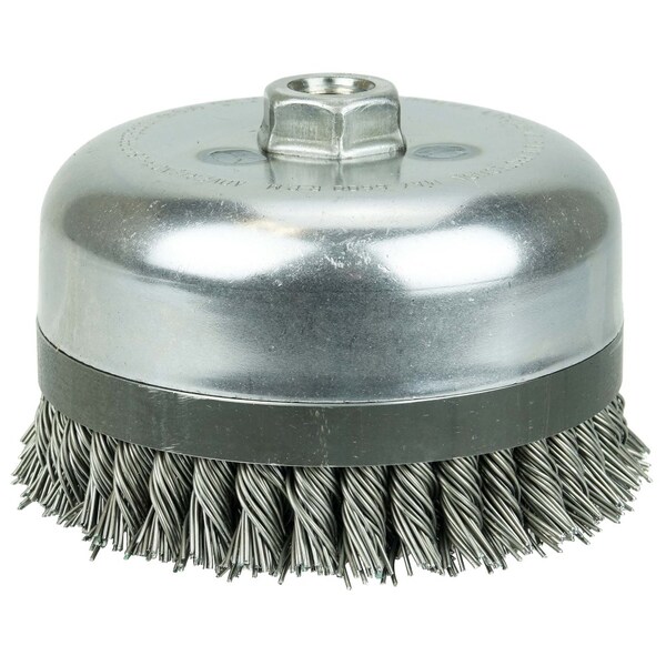 6" Double Row Knot Wire Cup Banded .035" Steel Fill 5/8"-11 UNC Nut