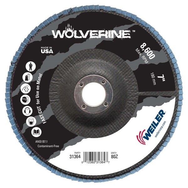 7" Abrasive Flap Disc, Conical (TY29), Phenolic Backing 80Z, 7/8"