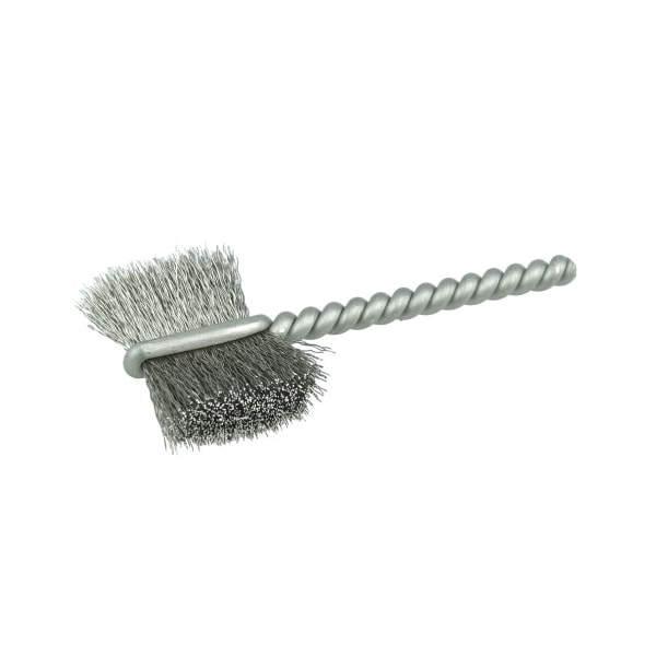 Weiler 7/8" Burrite Power Tube Brush is Ideal for cleaning and deburring internal threads on stainless steel parts. 1/8" stem diameter for use on CNC, drills and drill presses. Features a single continuous length of stainless steel stem wire filled with a tuft of crimped wire to provide aggressive flat side action. Single continuous length of stainless steel stem wire. Filled with a tuft of crimped wire to provide an aggressive flat side action. Ideal for cleaning and deburring internal threads. . .
