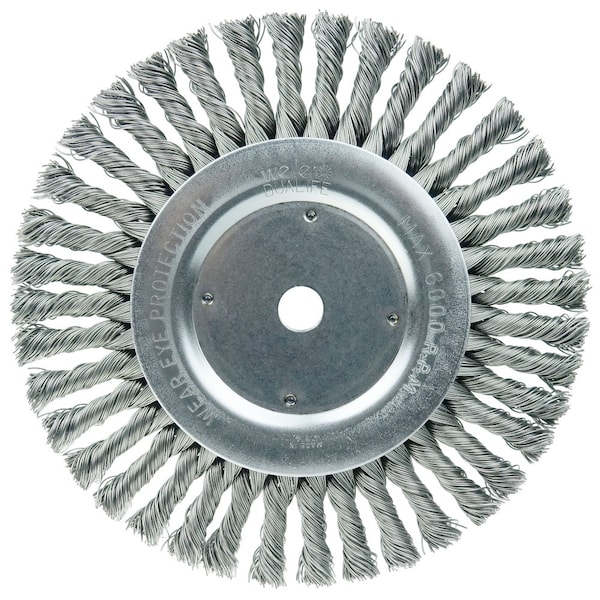 Weiler 8" Cable Twist Knot Wire Wheel Brush provides maximum brushing action with minimal flexibility. Ideal for demanding cleaning and coating removal applications on relatively smooth surfaces. 5/8" arbor hole for use on bench/pedestal grinder, CNC/milling/automatic machines. provide maximum brushing action with minimal flexibility;ideal for demanding cleaning and coating removal applications on relatively smooth surfaces. . . . .