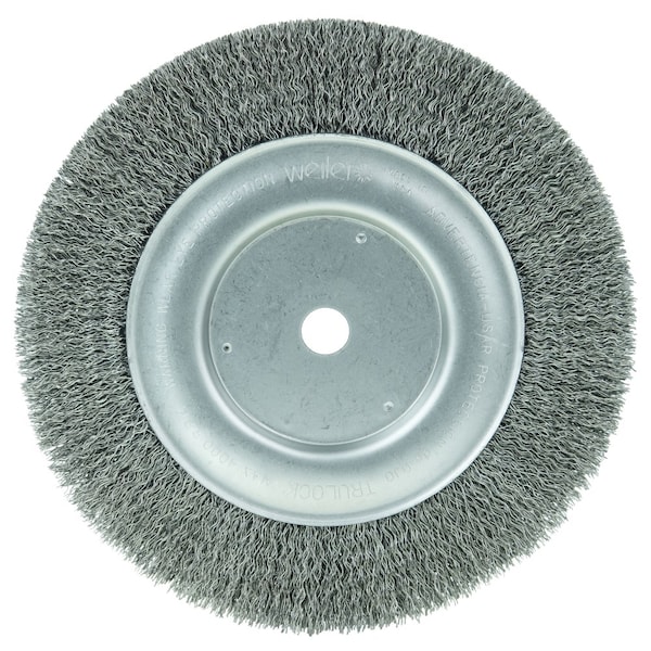 Weiler 8" Maximum Density Crimped Wire Wheel Brush features increased fill density for greater brushing action, longer life and consistent performance in the most demanding applications requiring the flexibility of a crimped wire wheel. 5/8" arbor hole for use on bench/pedestal grinders. Increased fill density for greater brushing action. Consistent performance. Longer life in the most demanding applications requiring the flexibility of a crimped wire wheel. Tool: bench grinder and pedestal grinder. .
