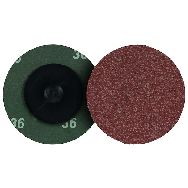 Coated Abrasive Blending Disc, Abrasive Type Coated, Abrasive Material Aluminum Oxide, Backing Material Fiber, Backing Weight Proprietary, Coating Coverage Closed, Grade Coarse, Grit 36, Overall Diameter 2 in, Quick Change System TR, Series Tiger AO, Maximum Operating Speed 25,000 RPM