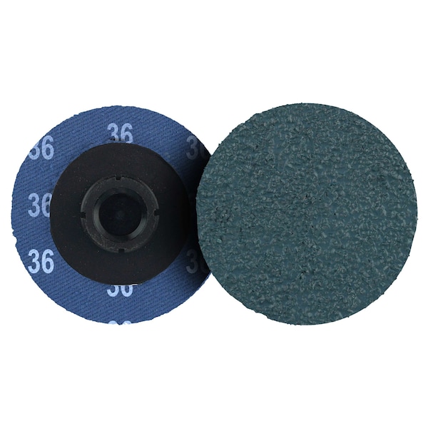 Coated Abrasive Blending Disc, Abrasive Type Coated, Abrasive Material Zirconia Alumina, Backing Material Cloth, Backing Weight Proprietary, Coating Coverage Closed, Grade Coarse, Grit 36, Overall Diameter 2 in, Quick Change System TS, Series Tiger Zirc, Maximum Operating Speed 25,000 RPM