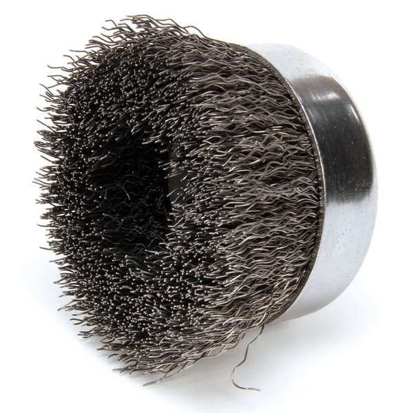 Cup Brush, Product Type Cup Brush, Quick Change System Not Applicable, Bristle Type Crimped Wire, Bristle Material Carbon Steel, Brush Dia. 4 in, Wire Dia. 0.02 in, Bristle Length 1 3/8 in, Grit Not Applicable, Overall Length 3 9/16 in, Compatible Tool Type Right-Angle Grinder, Color Silver, Primary Material Application Carbon Steel, Connector Type Threaded Hole, Connector Size 5/8 In.-11, Operating Speed - Maximum 10,200 RPM, Shank Length Not Applicable