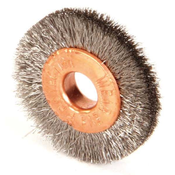 Wire Wheel Brush, Bristle Type Crimped Wire, Product Type Wire Wheel Brush, Bristle Material Stainless Steel, Brush Dia. 1 in, Grit Not Applicable, Face Width 3/16 in, Bristle Diameter 0.003 in, Bristle Length 1/4 in, Compatible Tool Type Die Grinder, Drill Press, Pencil Grinder, Straight Grinder, Primary Material Application Stainless Steel, Connector Type Threaded Hole, Connector Size 1/4 in, Operating Speed - Maximum 20,000 RPM, Color Not Applicable