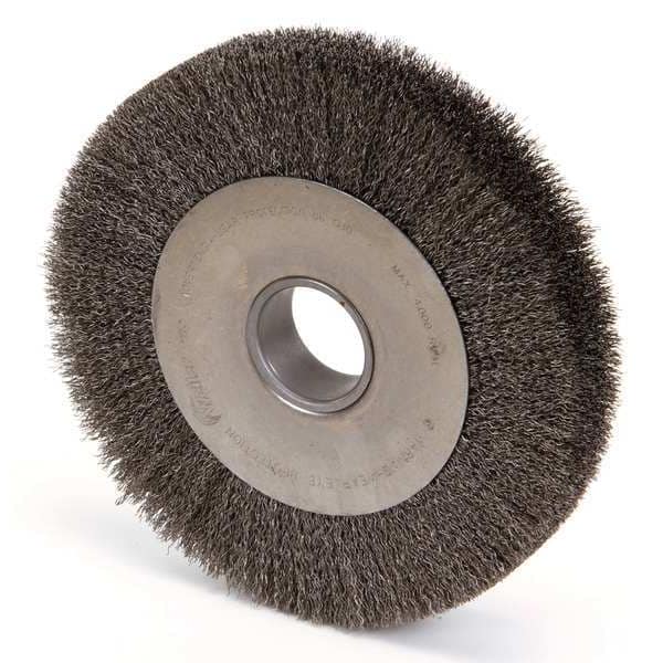 Wire Wheel Brush, Bristle Type Crimped Wire, Product Type Wire Wheel Brush, Bristle Material Carbon Steel, Brush Dia. 10 in, Grit Not Applicable, Face Width 1 5/8 in, Bristle Diameter 0.014 in, Bristle Length 1 7/8 in, Compatible Tool Type Bench Grinder, Primary Material Application Carbon Steel, Connector Type Threaded Hole, Connector Size 2 in, Operating Speed - Maximum 4,500 RPM, Shank Length Not Applicable, Color Not Applicable