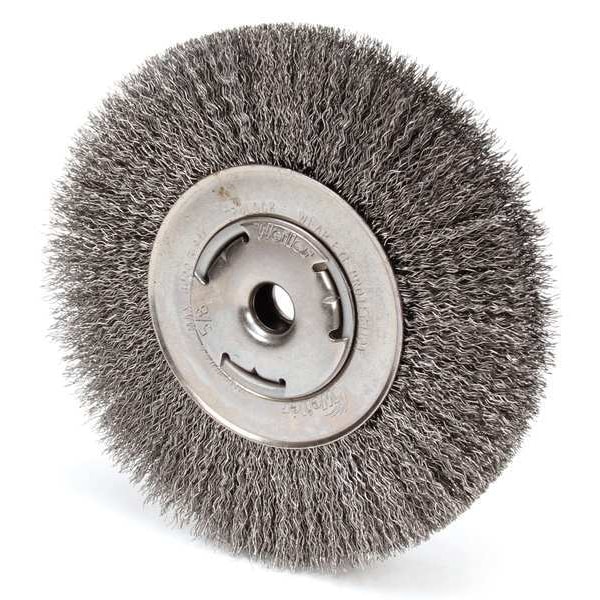 Wire Wheel Brush, Bristle Type Crimped Wire, Product Type Wire Wheel Brush, Bristle Material Carbon Steel, Brush Dia. 7 in, Grit Not Applicable, Face Width 7/8 in, Bristle Diameter 0.014 in, Bristle Length 1 5/8 in, Compatible Tool Type Bench Grinder, Primary Material Application Carbon Steel, Connector Type Threaded Hole, Connector Size 5/8 in, Operating Speed - Maximum 9,000 RPM, Shank Length Not Applicable, Color Not Applicable