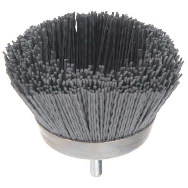 Cup Brush, Product Type Cup Brush, Quick Change System Not Applicable, Bristle Type Crimped Wire, Bristle Material Abrasive Nylon, Brush Dia. 2 3/4 in, Wire Dia. 0.035 in, Bristle Length 1 1/4 in, Grit 180, Overall Length 3 1/8 in, Compatible Tool Type Die Grinder, Drill, Impact Driver, Pencil Grinder, Straight Grinder, Color Silver, Primary Material Application Carbon Steel, Connector Type Round Shank, Connector Size 1/4 in, Operating Speed - Maximum 6,000 RPM