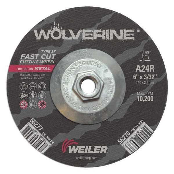 Cutting Wheel, Type 27, 6 in Dia, 0.0938 in Thick, 5/8 in-11 UNC Nut Arbor Hole Size
