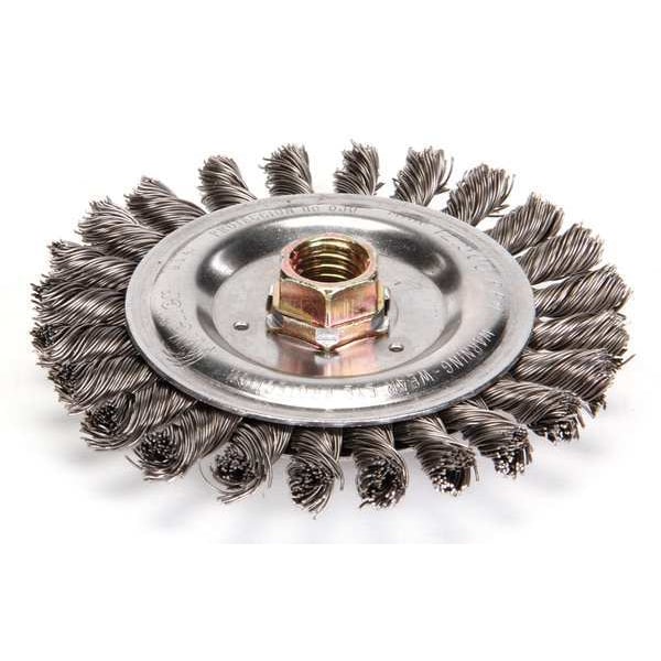 Wire Wheel Brush, Bristle Type Stringer Bead Twist Knot Wire, Product Type Wire Wheel Brush, Bristle Material Carbon Steel, Brush Dia. 5 in, Grit Not Applicable, Face Width 1/2 in, Bristle Diameter 0.023 in, Bristle Length 7/8 in, Compatible Tool Type Angle Grinder, Primary Material Application Carbon Steel, Connector Type Threaded Hole, Connector Size 5/8 In.-11, Operating Speed - Maximum 12,500 RPM, Shank Length Not Applicable, Color Not Applicable