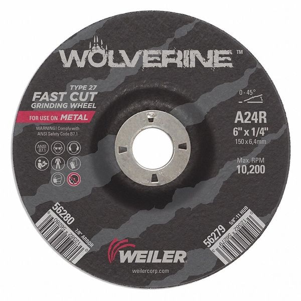 Grinding Wheel, Thickness 0.25 in, Abrasive Material Aluminum Oxide, Max. RPM 10,200 RPM, Grade A24R