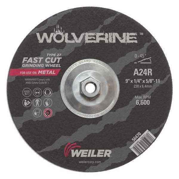Grinding Wheel, Type 27, 9 in Dia, 1/4 in Thick, 5/8 in-11 UNC Nut Arbor Hole Size, Aluminum Oxide