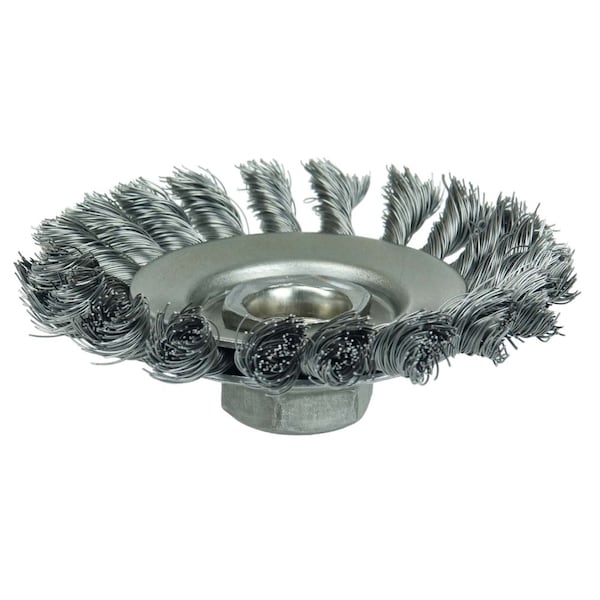 Knot Wire Bevel Brush 4" .020" Steel Fill 5/8"-11 UNC Nut
