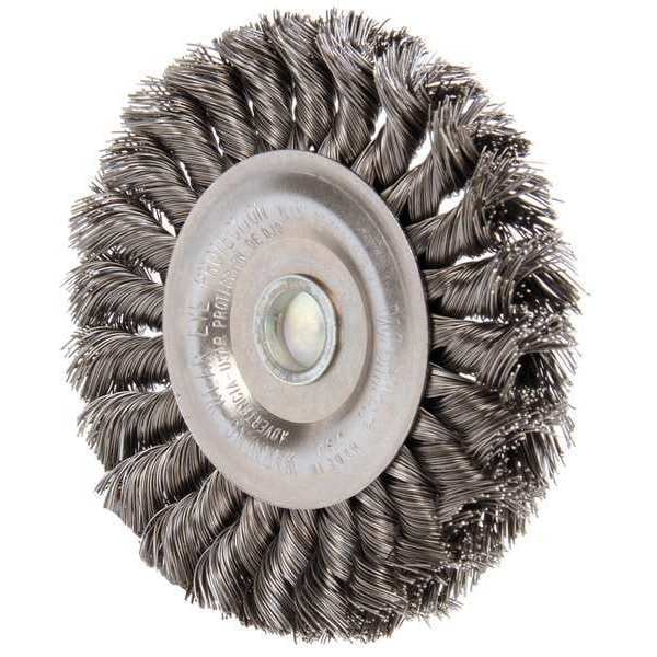 Wire Wheel Brush, Bristle Type Standard Twist Knot Wire, Product Type Wire Wheel Brush, Bristle Material Carbon Steel, Brush Dia. 4 in, Grit Not Applicable, Face Width 1/2 in, Bristle Diameter 0.014 in, Bristle Length 7/8 in, Compatible Tool Type Die Grinder, Drill Press, Pencil Grinder, Straight Grinder, Primary Material Application Carbon Steel, Connector Type Round Shank, Connector Size 1/4 in, Operating Speed - Maximum 20,000 RPM, Color Not Applicable