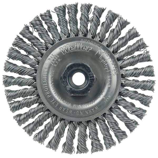 Weiler 4" Mini Roughneck Stringer Bead Weld Cleaning Brush is suitable for cleaning root and hot passes and reaching into corners. M10 x 1.25 nut for use on right angle grinders. The standard for high performance weld cleaning brushes. Narrow face brushes are suitable for cleaning root and hot passes and reaching into corners. Wider face wheels can be used for cleaning filler and cap passes as well as for other surface prep and cleaning applications. . .