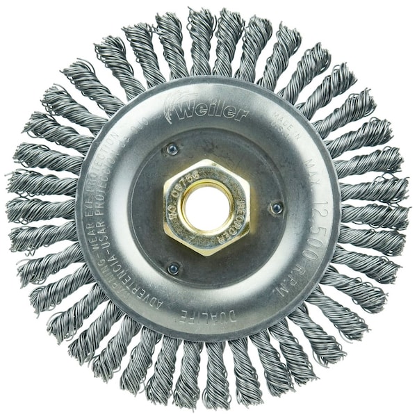 Weiler 5" Roughneck Root Pass Weld Cleaning Brush is suitable for cleaning root and hot passes and reaching into corners. 5/8"-11 nut for use on right angle grinders. The standard for high performance weld cleaning brushes. Narrow face brushes are suitable for cleaning root and hot passes and reaching into corners. Wider face wheels can be used for cleaning filler and cap passes as well as for other surface prep and cleaning applications. . .