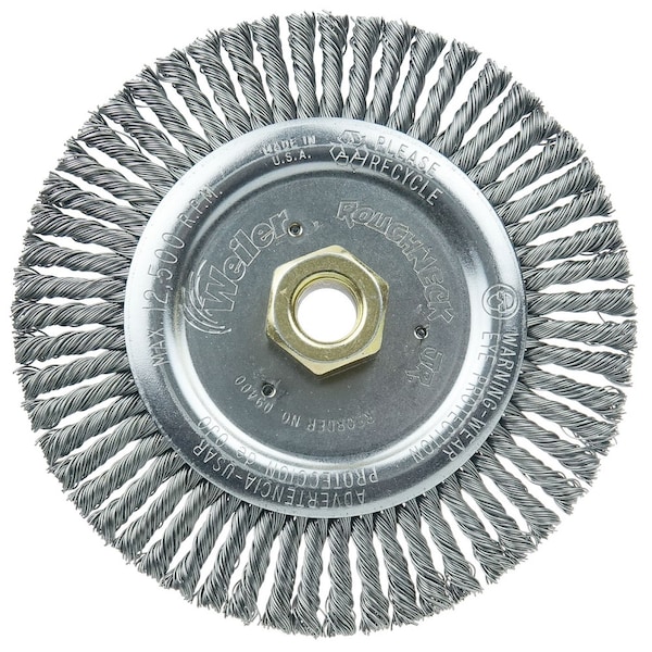 Weiler 6" Roughneck Jr. Root Pass Weld Cleaning Brush is suitable for cleaning root and hot passes and reaching into corners. 5/8"-11 nut for use on right angle grinders. The standard for high performance weld cleaning brushes. Narrow face brushes are suitable for cleaning root and hot passes and reaching into corners. Wider face wheels can be used for cleaning filler and cap passes as well as for other surface prep and cleaning applications. . .
