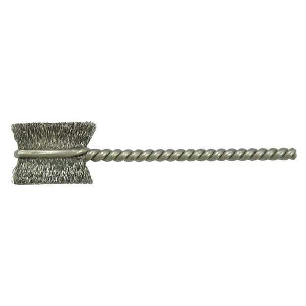 Burrite Tube Brush, Product Type Burrite Tube Brush, Stem Style Single, Brush Material Steel, Brush Dia. 1/2 in, Compatible Tube Outer Diameter Not Applicable, Stem Diameter 3/32 in, Brush Length 9/16 in, Wire Dia. 0.003 in, Overall Length 2 1/8 in, Compatible Tool Type Drill, Operating Speed - Maximum 2,000 RPM