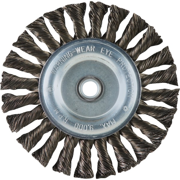 6. Use on bench grinder for heavy-duty weld cleaning and metal preparation. Removes rust paint and carbon. Excellent for cleaning grooves and corners. Coarse wire. 5/8 - 1/2 arbor. Maximum speed 9000 RPM.