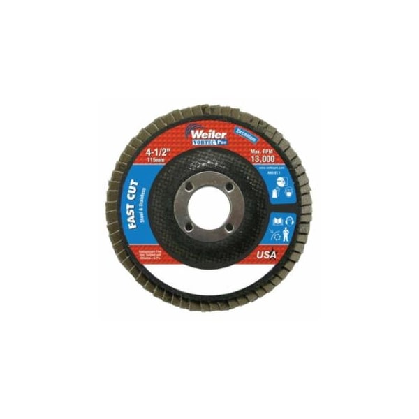 Vortec Pro Abrasive Flap Disc, 4-1/2 in x 7/8 in, Flat, Phenolic Backing, 10PK