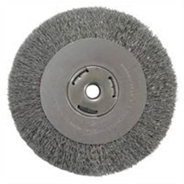Features -Flexible brushing action -Wire Material - Carbon Steel -Dia. - 6 in. -Wire Size - 0.0140 in. -Arbor Diam. - 5/8 in. -Speed - 4000 rpm [Max] -Type - Wide Face