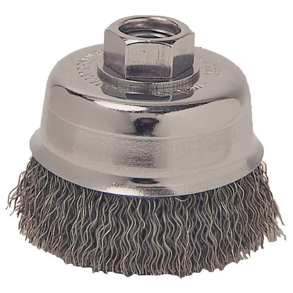 Wire Cup Brush, 5 in Dia, 5/8-11 Arbor/Shank, Carbon Steel Bristle