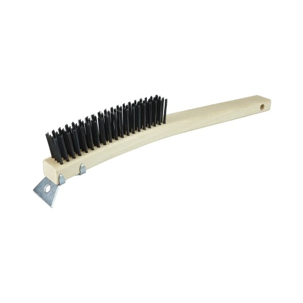 Wire Scratch Brush w/Scraper, .012 Carbon Steel Fill, 4 x 18 Rows