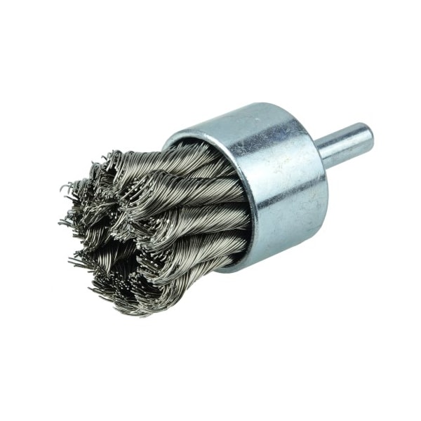 Wolverine 1" Knot Wire End Brush features hollow end construction and heavy duty brushing action. Ideal for more demanding cleaning applications in recessed areas. 1/4" stem diameter for use on die grinder, drill and drill presses. Hollow end construction and heavy duty brushing action. For cleaning heavy deposits from valve guides in gas and diesel engines. 2000 rpm maximum speed. Ideal for more demanding cleaning applications in recessed areas. .