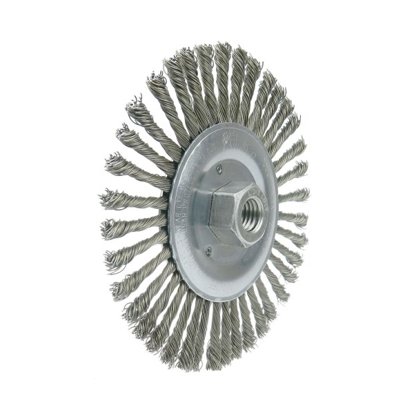 Wolverine 6" Stringer Bead Twist Knot Wire Wheel Brush is suitable for cleaning root and hot passes and reaching into corners. Engineered for cost effective use in less demanding applications. Light-duty. 5/8"11" nut for use on right angle grinders. Narrow face brushes are suitable for cleaning root and hot passes and reaching into corners. Engineered for cost-effective use in less demanding applications. . . .