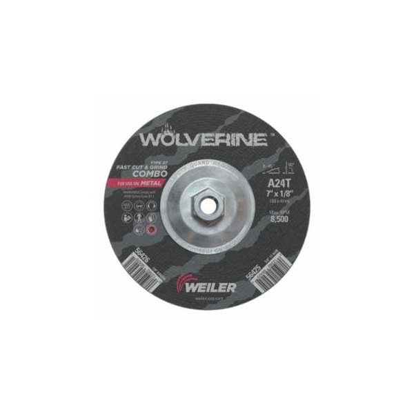 Wolverine Combo Wheels, 7 in Dia, 1/8 in Thick, 5/8 in Arbor, 24 Grit, T