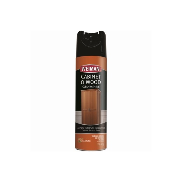 Weiman Cabinet Wood, 17 oz Aerosol, Clean Shine Cleans and restores shine to your cabinets and wood furniture Safely removes dirt, soil and residue This product contains Brazilian Carnauba Wax to restore natural beauty and enhance shine It's protective formula guards against water marks, dirt and grime This product is recommended for all finished wood surfaces including tables, chairs, officebedroom furniture, antique wood furniture, cabinets, wall paneling, doors, trim, baseboards and painted wood surfaces Do not use on floors