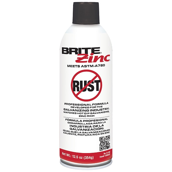 Galvanizing Compound, Opacity 100 Percent, Maximum Dry Film Thickness 2.5 mil, Coating Application Galvanizing Compound Spray Primer, Color Family Aluminum/Metallic, Compatible Surface Material Galvanized Iron, Galvanized Steel, Finish Texture Smooth, Resin Type Organic, Color Silver, Container Size 16 oz, Coverage Area 40 sq ft, Base Type Solvent, Dry Time 24 hr, Use Location Exterior, Sub Brand Brite Zinc, Dry Time Tack Free 15 min, Dry Time to Recoat 15 min, Flammability Flammable