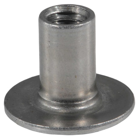 Round Weld Nut, 1/4"-20, Steel, 25/32 in Base Dia, 3/64 in Ht, 9/16 in Barrel Ht, Steel, 100 PK