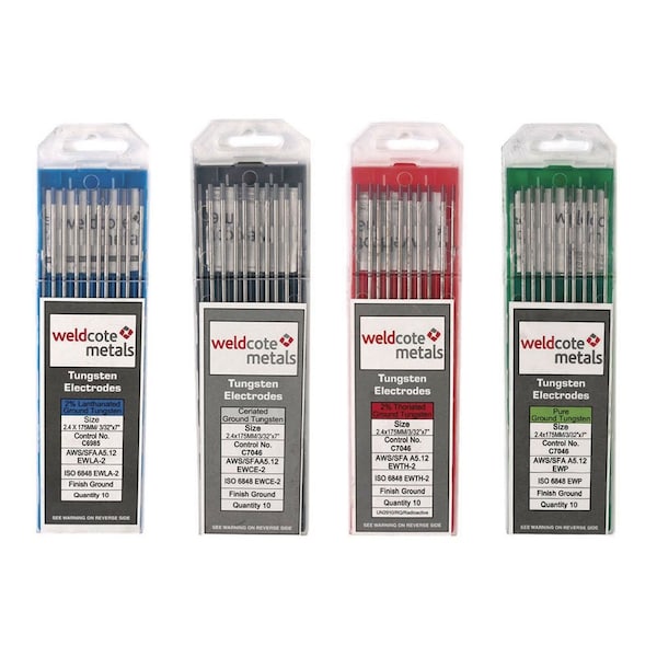 2% Lanthanated (Blue) Ewla-2 (Principle Oxide: 1.8-2.2% Lanthanum Oxide). Good For Use In Both Alternating Current (A/C) Or Direct Current (D/C) Applications Using Inverter Or Transformer Based Constant Current Power Sources. Excellent Arc Starting, Low Burn Rate, Good Arc Stability (Even At Lower Voltages), Excellent Re-Ignition And Extends Higher Operating Current Range. Ideal For Steel, Stainless Steels, Low Alloyed Steels, Aluminum Alloys, Magnesium Alloys, Titanium Alloys, Copper Alloys And Nickel Alloys.