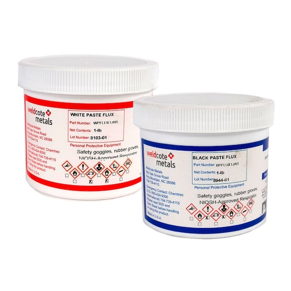 Weldcote White Paste Flux Is Formulated As A General Purpose Silver Brazing Flux. It Is Ideal For Brazing Copper, Brass, Nickel, Carbon Steel, Stainless Steel And Precious Metals. Residues Are Water Soluble. Weldcote White Paste Flux Is A Creamy, White Silver Brazing Paste Flux That Is Active And Protective To 870 Degrees Celsius/1600 Degrees Fahrenheit. It Was Formulated For The Majority Of Brazing Operations And Is Recommended For Use With Copper, Copper Based Alloys, Steel, Stainless Steel, Nickel, Carbides, Precious Metals And Heat Resistant Alloys. Weldcote White Paste Flux Is Available In Dispensable Form Suitable For Spraying Or Other Automatic Application Methods. The Flux Will Not Harden Or Crystallize, Retaining Its Creamy Texture Up To Two Years. Weldcote White Paste Flux May Be Used In Concentrated Form Or Diluted With Water To A Thinner Consistency. Heating The Flux To 60-82 Degrees Celsius Or 140-180 Degrees Fahrenheit Makes It Less Viscous And More Reactive. Heat The Flux Slowly To Reduce Spattering Or Excessive Bubbling. The Raw Flux And Residues Are Soluble In Hot Water (At Least 60 Degrees Celsius/140 Degrees Fahrenheit). Chipping Or Grinding Is Not Necessary. Procedure: Remove Any Oil, Grease Or Other Contaminants From The Surface To Be Brazed. Apply Flux To Joint By Dipping, Swabbing Or Brushing Area Being Brazed. The Flux May Be Used As Supplied Or Diluted. Apply Heat By Torch, Indution Or Other Means To The Area Being Brazed After The Flux Has Been Applied To Activate The Flux. Feed The Braze Alloy Into The Joint, Unless A Brazing Perform Is Already In Place. Clean Flux Residues From Brazed Joint Using Hot Water For Best Results. If Unavailable, Room Temperature Water May Also Be Used.