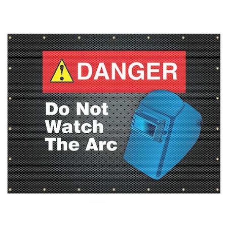 Welding Screen, Do Not Watch Arc Welder At Work, Vinyl, 13 oz/sq yd., 8 ft W x 6 ft. H, Blue