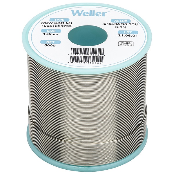 Solder Wire, Form Flux-Cored Wire, Material Composition 96.5 Percent Tin, 3 Percent Silver, 0.5 Percent Copper, Wire Diameter 1 mm, Weight 500 g, Melting Temperature (Minimum) 422 Degrees F, Melting Temperature (Maximum) 430 Degrees F, Flux Type No-Clean, Flux Classification ROM1, Solder Series SAC M1, For Joining Metal, Application High Soldering Temperature, Container Type Spool