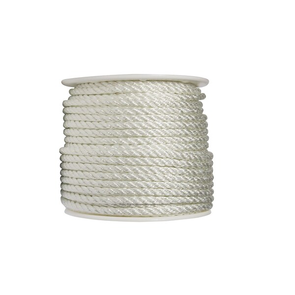 Twisted nylon rope is good for tiedown and securing. Synthetic composition is moisture resistant for all weather use. Used for hauling, lifting and towing.